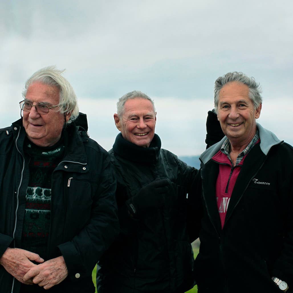 בתמונה מימין: עם שני אחיו, הגדולים ממנו וייבדלו לחיים, בעת צילומי "שלושה אחים ומערה" סירטה הנפלא של כלתו, תמר טל ענתי
