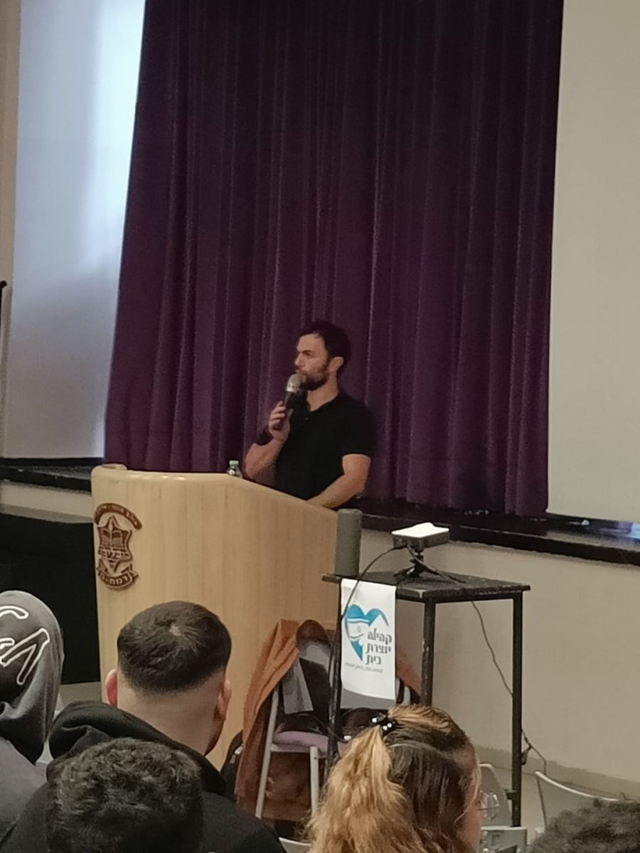 נועם גרשוני הגיע להרצאה בתיכון בליך